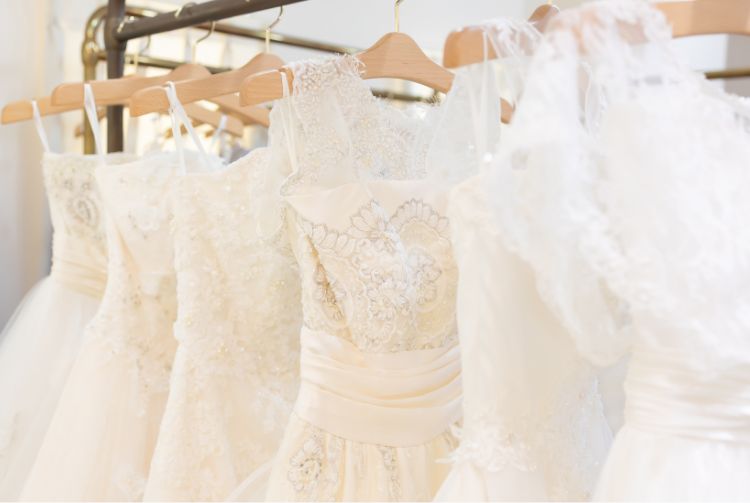 デザイン、サイズ、色柄さまざまな200着以上の衣装をご準備。お悩みの場合もコーディネーターがアドバイスさせていただくので安心です。セレスラヴィではお客様に一番美しく着ていただくため、体型に合わせて縫い合わせ調整を行います。