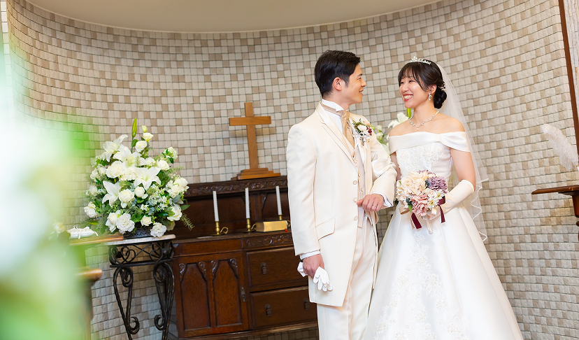 館内併設のチャペルでは結婚式さながらのお写真を撮ることができます