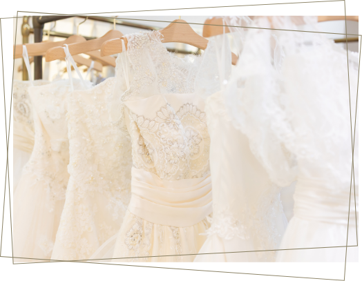 デザイン、サイズ、色柄さまざまな200着以上の衣装をご準備。お悩みの場合もコーディネーターがアドバイスさせていただくので安心です。セレスラヴィではお客様に一番美しく着ていただくため、体型に合わせて縫い合わせ調整を行います。